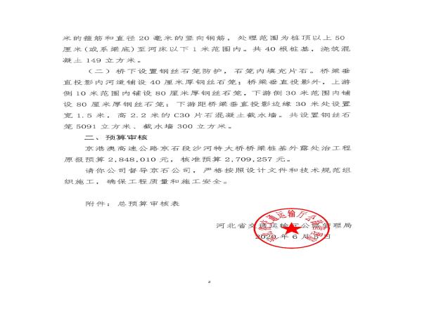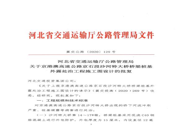 關于京港澳高速公路京石段沙河特大橋橋梁樁基外露處治工程施工圖設計的批復