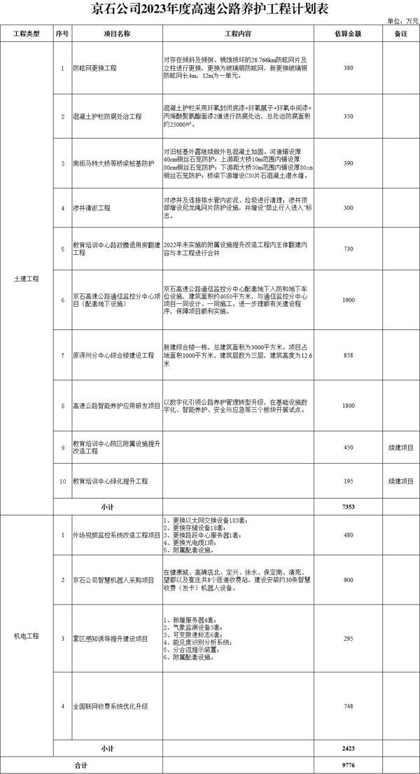 高速公路養(yǎng)護(hù)計(jì)劃公開