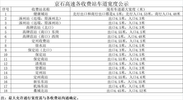 京石高速各收費(fèi)站車(chē)道寬度公示