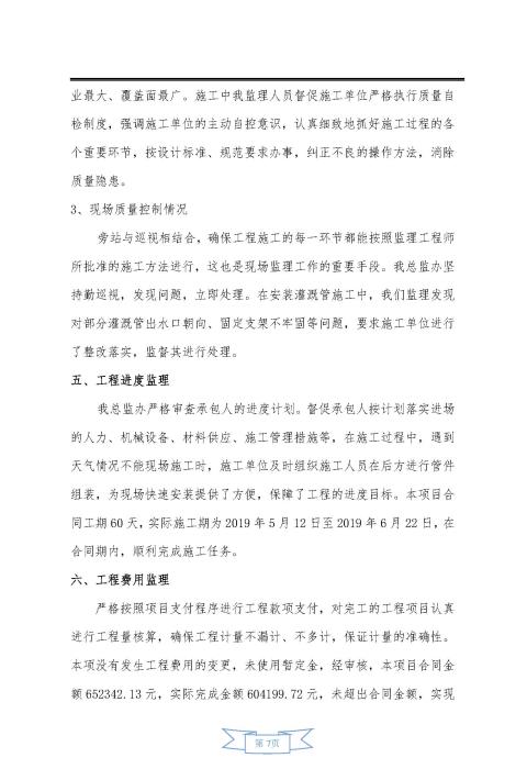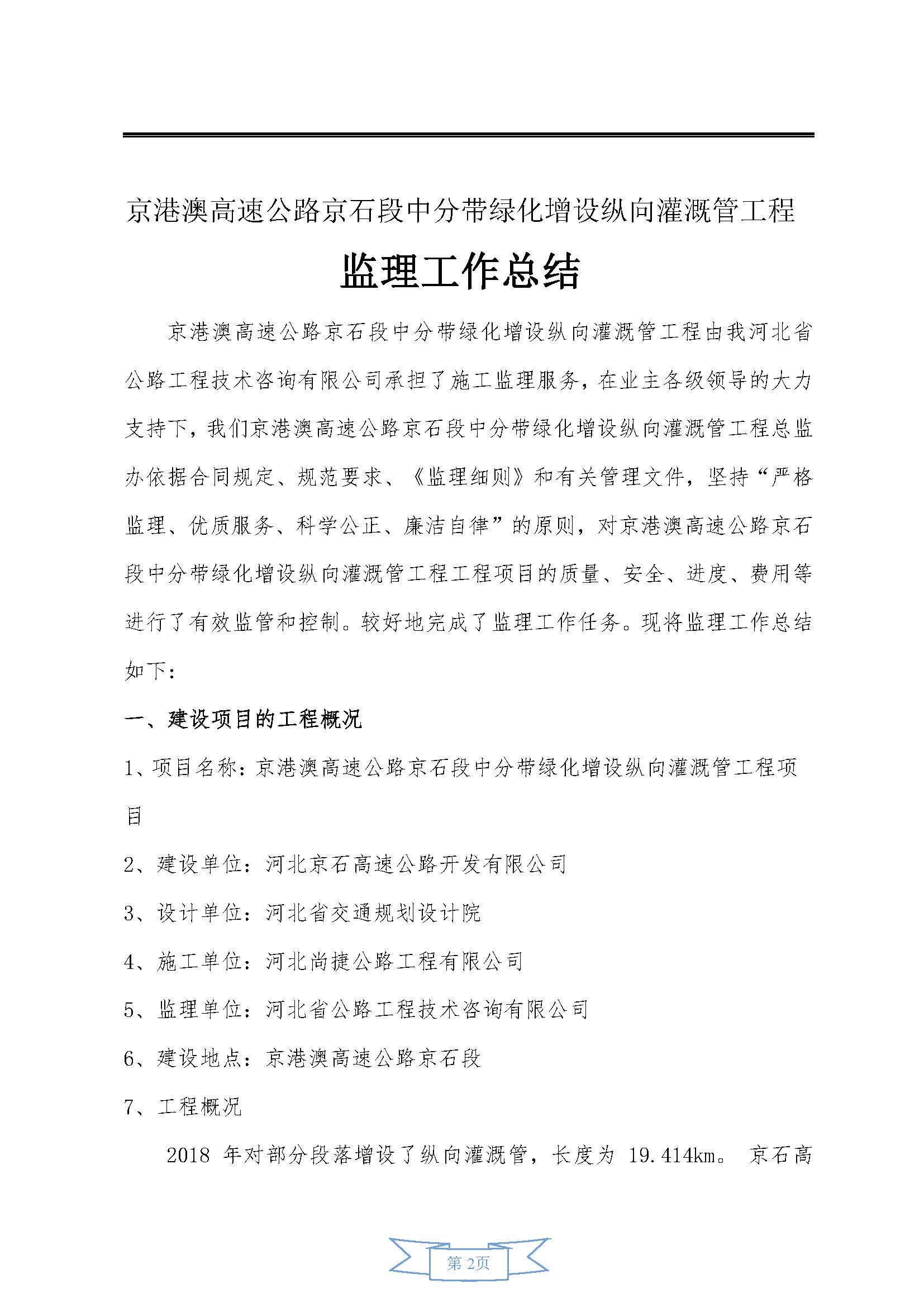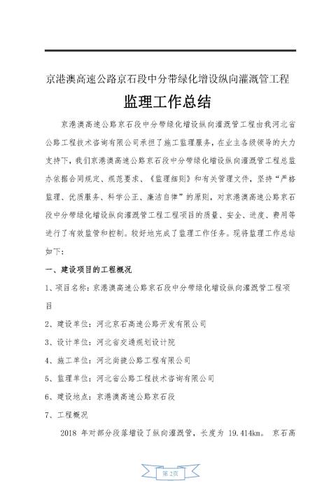 中分帶綠化增設(shè)縱向灌溉管工程監(jiān)理報告