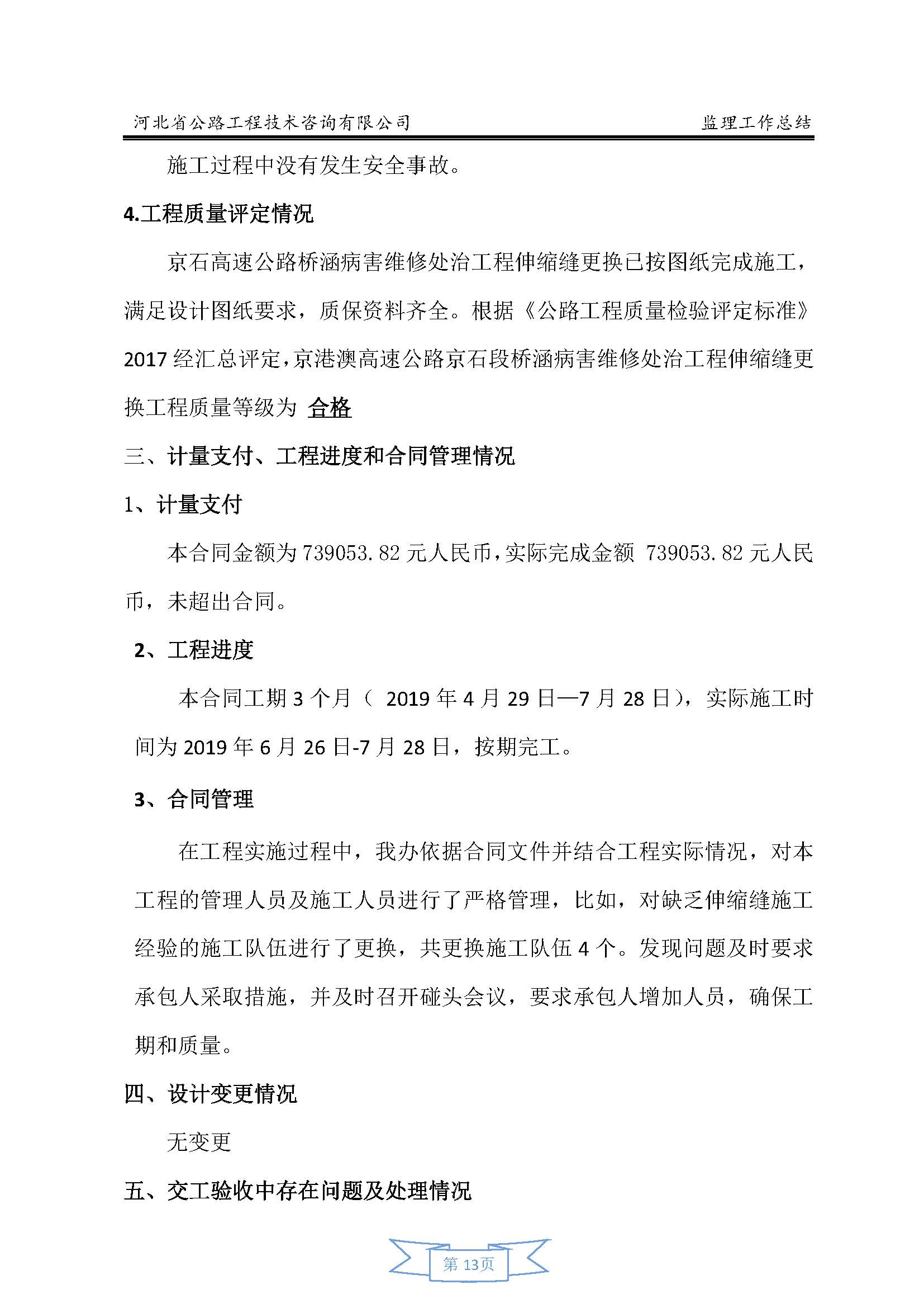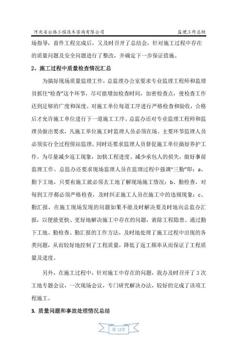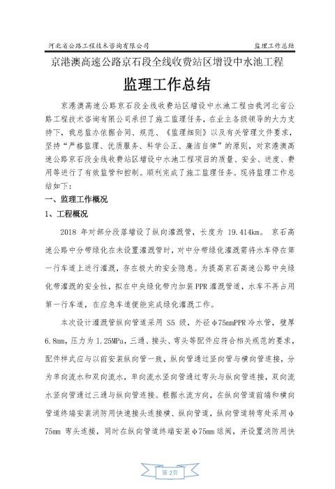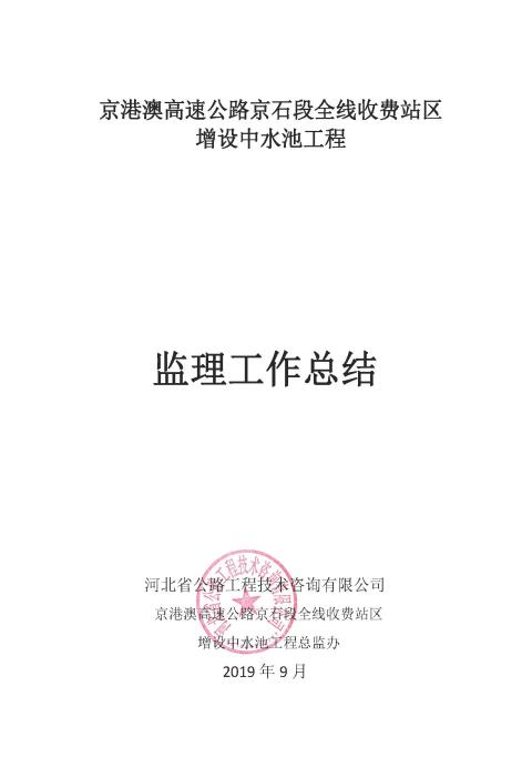 全線收費(fèi)站區(qū) 增設(shè)中水池工程監(jiān)理報告