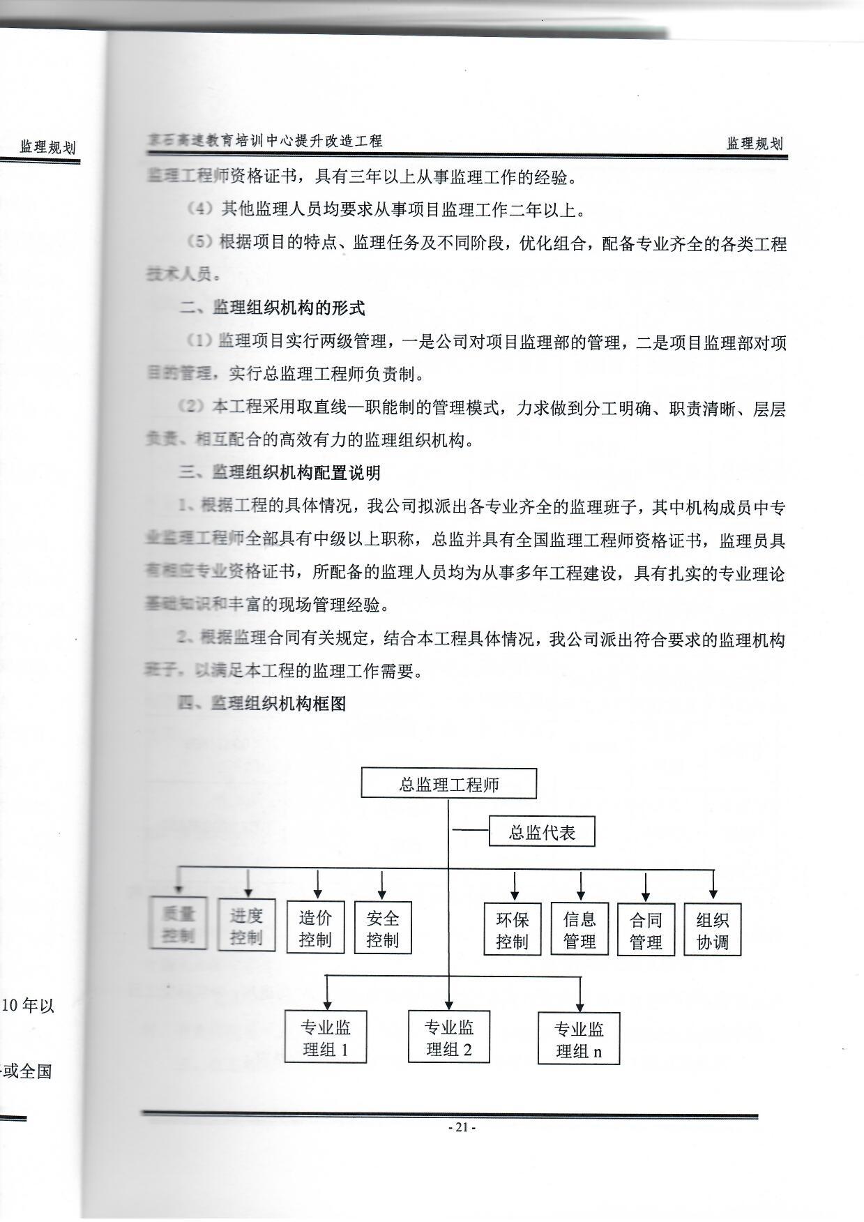 教育培訓中心提升改造工程監(jiān)理組織架構(gòu)