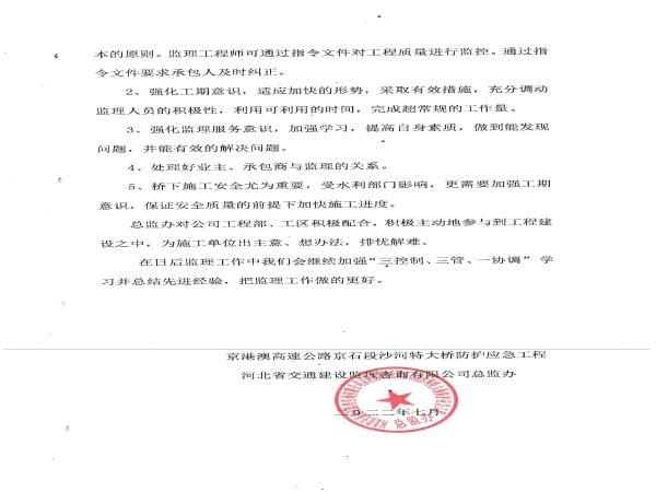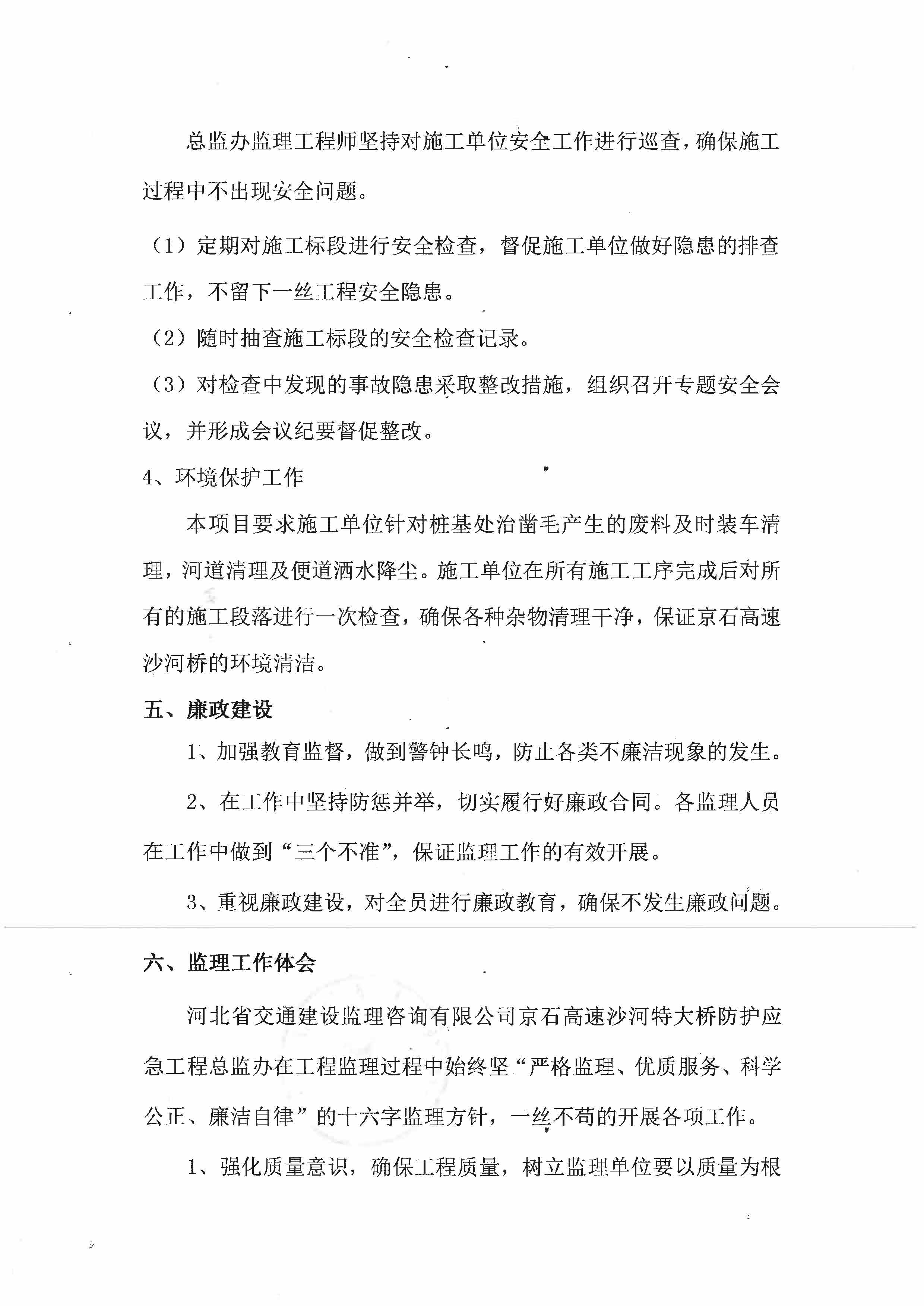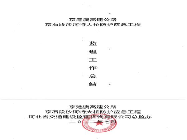 京港澳高速京石段沙河特大橋防護(hù)應(yīng)急工程監(jiān)理報告