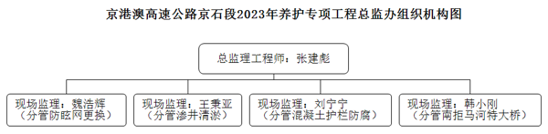 京港澳高速公路京石段2023年養(yǎng)護(hù)專項工程總監(jiān)辦組織機(jī)構(gòu)圖