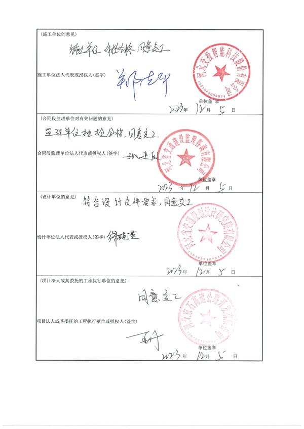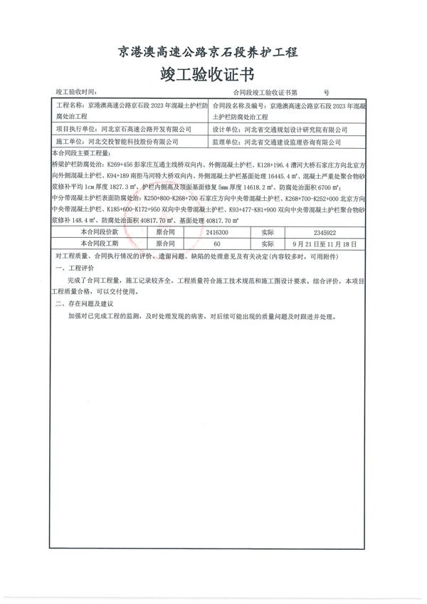 京港澳高速公路京石段2023年混凝土護欄防腐處治工程驗收證書