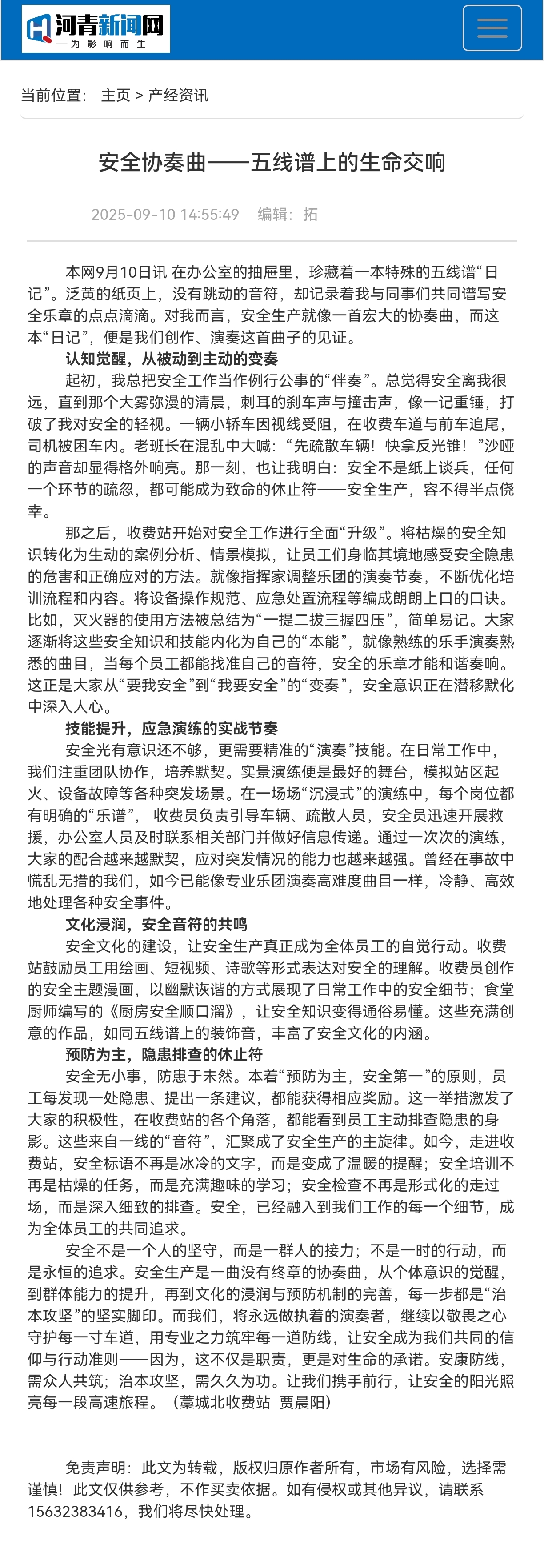 【河青新聞網(wǎng)】安全協(xié)奏曲——五線譜上的生命交響