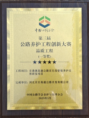 近日,在中國公路學(xué)會養(yǎng)護與管理分會第十四屆學(xué)術(shù)年會暨第三屆公路養(yǎng)護工程創(chuàng)新大賽表彰儀式上,河北交投集團所屬京石高速公路公司的“智能養(yǎng)護應(yīng)用”項目憑借智能化技術(shù)創(chuàng)新成果,從全國優(yōu)秀案例中脫穎而出,榮獲品質(zhì)工程一等獎。
