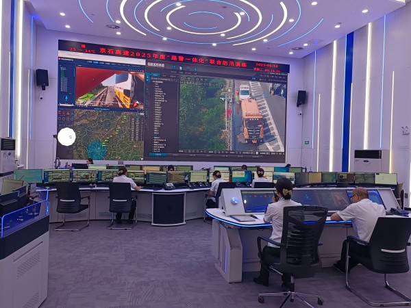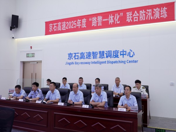此次演練采取實戰(zhàn)聯(lián)合、多點同步的演練方式,同時進行高速公路邊坡水毀、上游泄洪危及橋梁、收費站站區(qū)防汛三種突發(fā)事件的應急演練,由智慧調(diào)度中心啟動聯(lián)合演練,路警聯(lián)合指揮中心實施指揮調(diào)度。