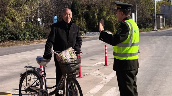 工作人員迅速上前攔下老人,經耐心詢問得知,這位李大爺原本想去附近的向陽村大集買菜,因年事已高,在騎行過程中迷失了方向。本該向東行駛的他,糊里糊涂地騎到了高速公路入口處。得知自己走錯路后,李大爺神色焦急,一時間不知所措。