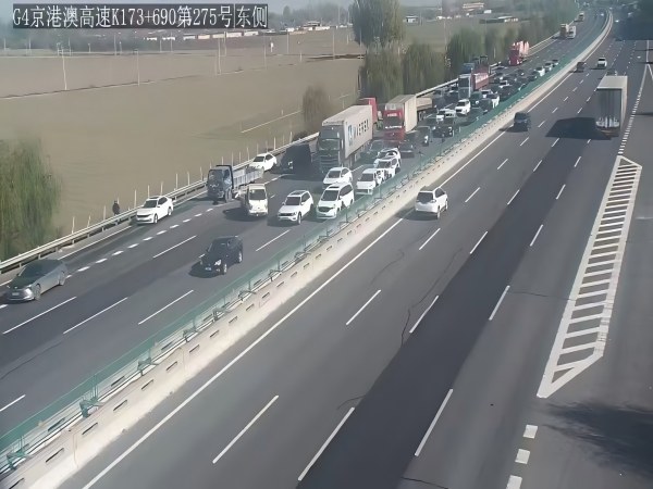 11月15日11時(shí)25分,智慧調(diào)度中心監(jiān)控人員通過(guò)視頻巡檢發(fā)現(xiàn),京石高速南行K173處發(fā)生兩輛貨車追尾事故,占據(jù)兩條車道,導(dǎo)致后方車流積壓,現(xiàn)場(chǎng)通行緩慢且風(fēng)險(xiǎn)加劇。