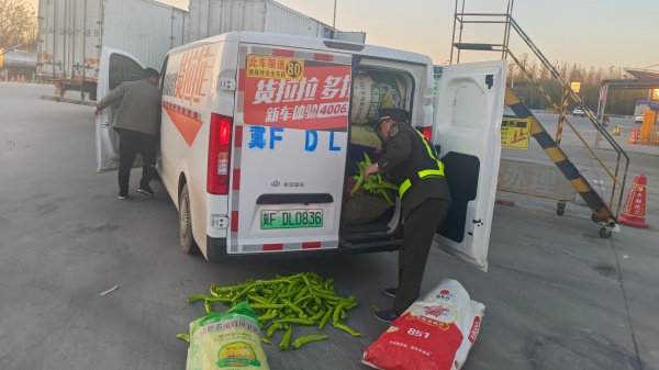 12月3日16時(shí)左右,一輛裝載蔬菜的綠通貨車(chē)在保定南站下路,在檢驗(yàn)過(guò)程中,當(dāng)查驗(yàn)拍照時(shí),車(chē)廂后門(mén)打開(kāi)的剎那,上面裝的尖椒灑落滿(mǎn)地。司機(jī)一下慌了神,露出了焦急的神情?!柏浿髡戎l(fā)貨。這可怎么辦啊,肯定會(huì)扣我的運(yùn)費(fèi)〞正在驗(yàn)貨的馬立杰趕緊安慰說(shuō):“師傅別急啊,我們馬上幫您裝上車(chē)?!?/span>