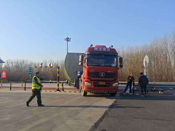 “別急,我們想辦法!”值班站長沈?qū)W輝憑借對收費站的熟悉,知道出口超寬車道比入口寬出約50厘米,可以嘗試從出口超寬車道駛?cè)?,抓住這一關(guān)鍵,他秉著“特事特辦”的原則,果斷啟動應(yīng)急方案:安排大件車從出口超寬車道駛?cè)耄嫦蛞龑?dǎo)上路。寒風(fēng)凜冽,戶外氣溫持續(xù)走低,班組成員全員上陣,在車道上一守就是四個多小時。