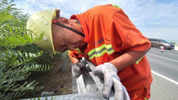 為了完成勞動(dòng)競賽各項(xiàng)目的技術(shù)狀況提升工作,定州工區(qū)采用邊調(diào)查邊施工的方案,加快技術(shù)狀況提升工作的進(jìn)度。四個(gè)項(xiàng)目中工程量最大的是護(hù)欄設(shè)施技術(shù)狀況提升工作,需要對(duì)雙幅將近140公里的鋼護(hù)欄的螺栓、防阻塊、墊片等各種配件完好程度進(jìn)行檢查,不放過每一條螺栓、每一個(gè)墊片。工區(qū)集中優(yōu)勢兵力先啃這塊硬骨頭,利用秋季多晴好天氣的有利條件,將施工人員分成幾組,延長施工時(shí)間分段進(jìn)行施工,將缺少的護(hù)欄配件逐個(gè)補(bǔ)齊,將每一個(gè)螺栓挨個(gè)擰緊。對(duì)防眩設(shè)施的提升工作則是利用中央帶綠化修剪的施工現(xiàn)場合并施工,將中央帶綠化間零星分布的銹蝕的金屬防眩網(wǎng)進(jìn)行更換。