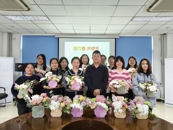 活動以“春日來信 — 與花對話遇見更好的自己”為主題,于3月7日上午9點在會議室準(zhǔn)時拉開帷幕。現(xiàn)場布置溫馨雅致,充滿了春日的氣息。18 位女職工齊聚一堂,在輕松愉悅的氛圍中開啟了這場特別的活動之旅。